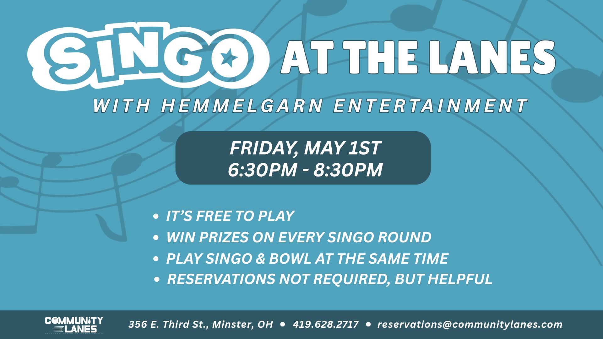 SINGO is a high-energy twist on traditional Bingo - listen to your favorite songs instead of numbers and mark your card as the music plays. Featuring hits from past decades...
