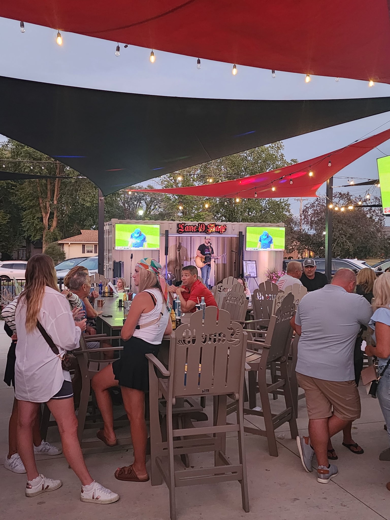 There is a large out door game area for All Ages. Some of the games will be Cornhole, Connect Four, Jenga and more! There are large Sunshades installed for shading as well as full sun. Outdoor TV’s and Sound System are also be installed for your entertainment. We have Live Acoustic Shows on the Patio Stage. Be sure to check our Events Calendar.
