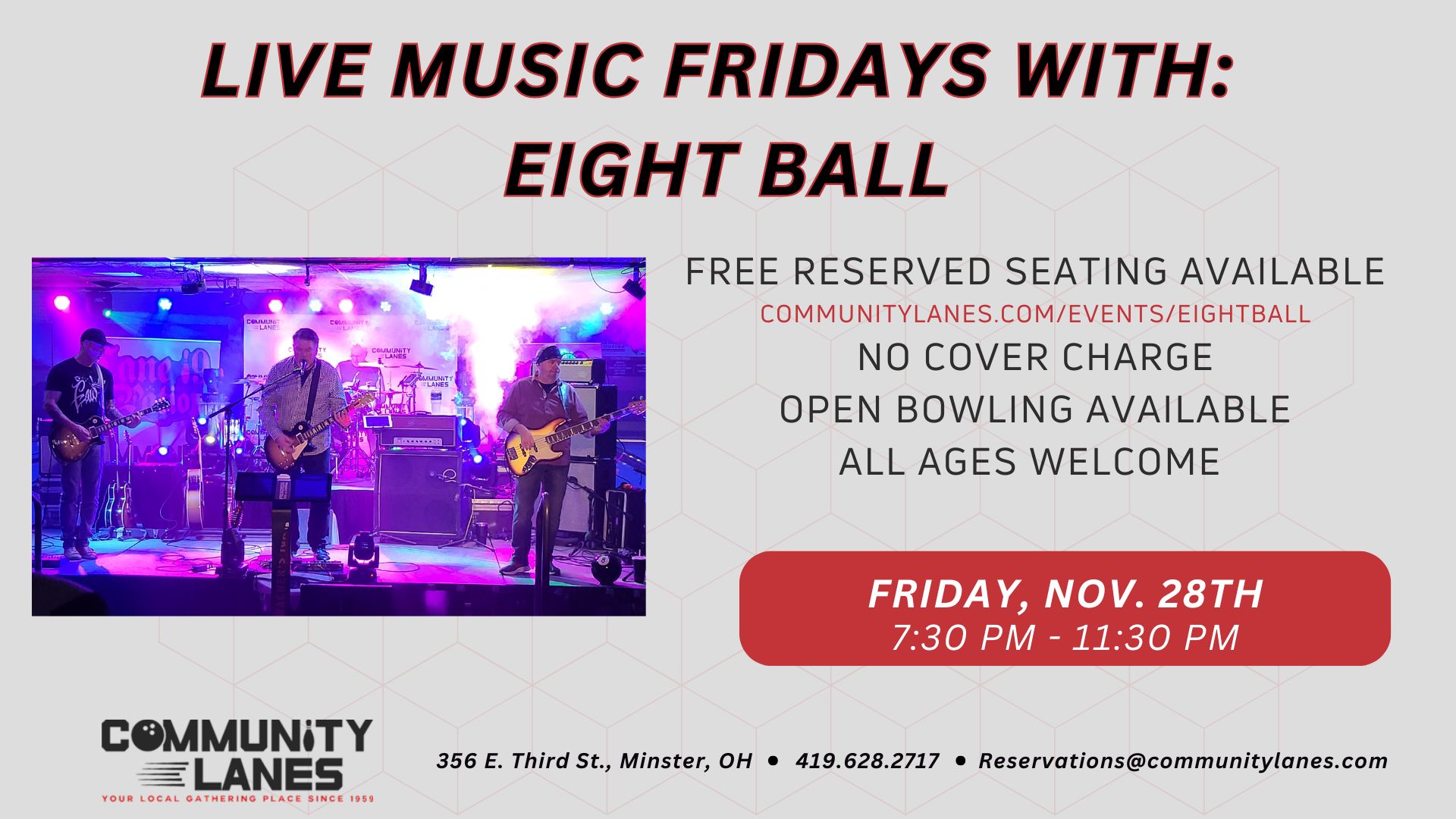 We are also offering this bus if your group would like to spend the entire time having a great time at Community Lanes during one of our awesome events! We offer more than just bowling, great food and ice cold drinks. Check our our Live Entertainment Schedule for Live Music, Trivia & SINGO!